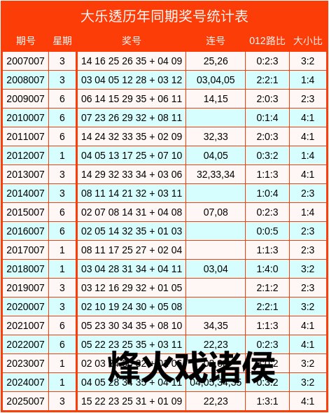 大乐透积年同时数据统计表