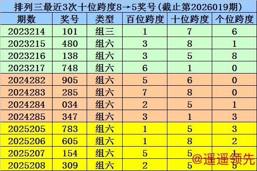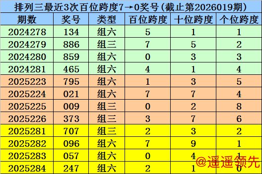 第2025281-第2025283期奖号:707、096、057,其下期奖号为:247,首位号码跨度为2;